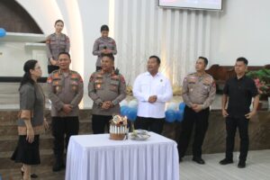 TANJUNG SELOR (Qiblatku) – Kepolisian Daerah Kalimantan Utara melaksanakan Pembinaan Rohani dan Mental (Binrohtal) rutin setiap Kamis pagi (16/10) usai apel pagi. Kegiatan rutin ini menjadi lebih istimewa bagi personel Nasrani, karena bertepatan dengan perayaan Hari Ulang Tahun (HUT) ke-2 Gereja Oikumene Hosana Polda Kaltara.