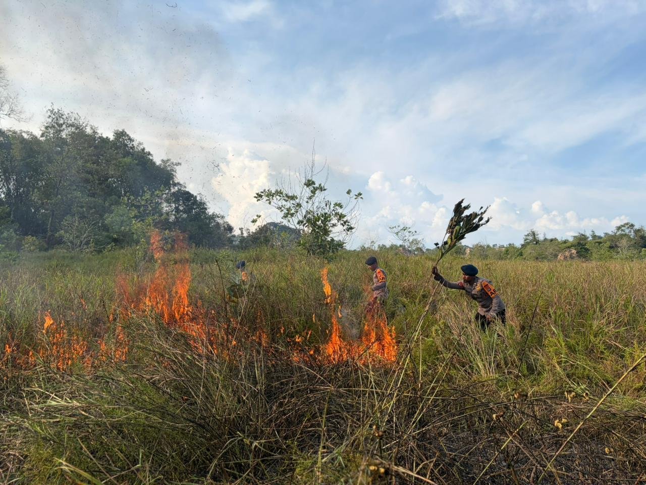 Quick Response Tim SAR Brimob Polda Kaltara Padamkan Kebakaran Lahan di Aki Balak